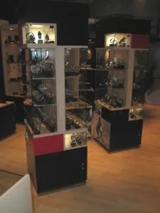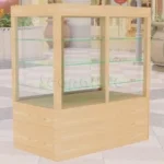 La elección de materiales impacta directamente en la durabilidad y apariencia de los exhibidores. Vidrio templado, madera de alta calidad, acero inoxidable o acrílico son opciones ideales.