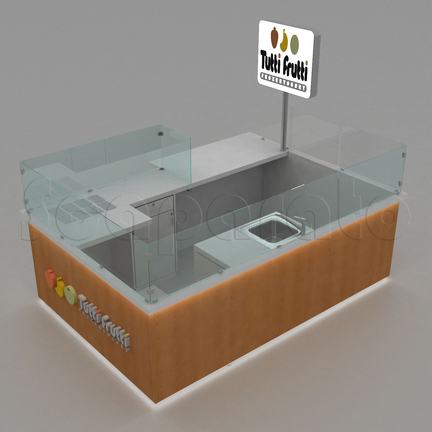 Diseña un kiosco de fruteria que combine estética y robustez.