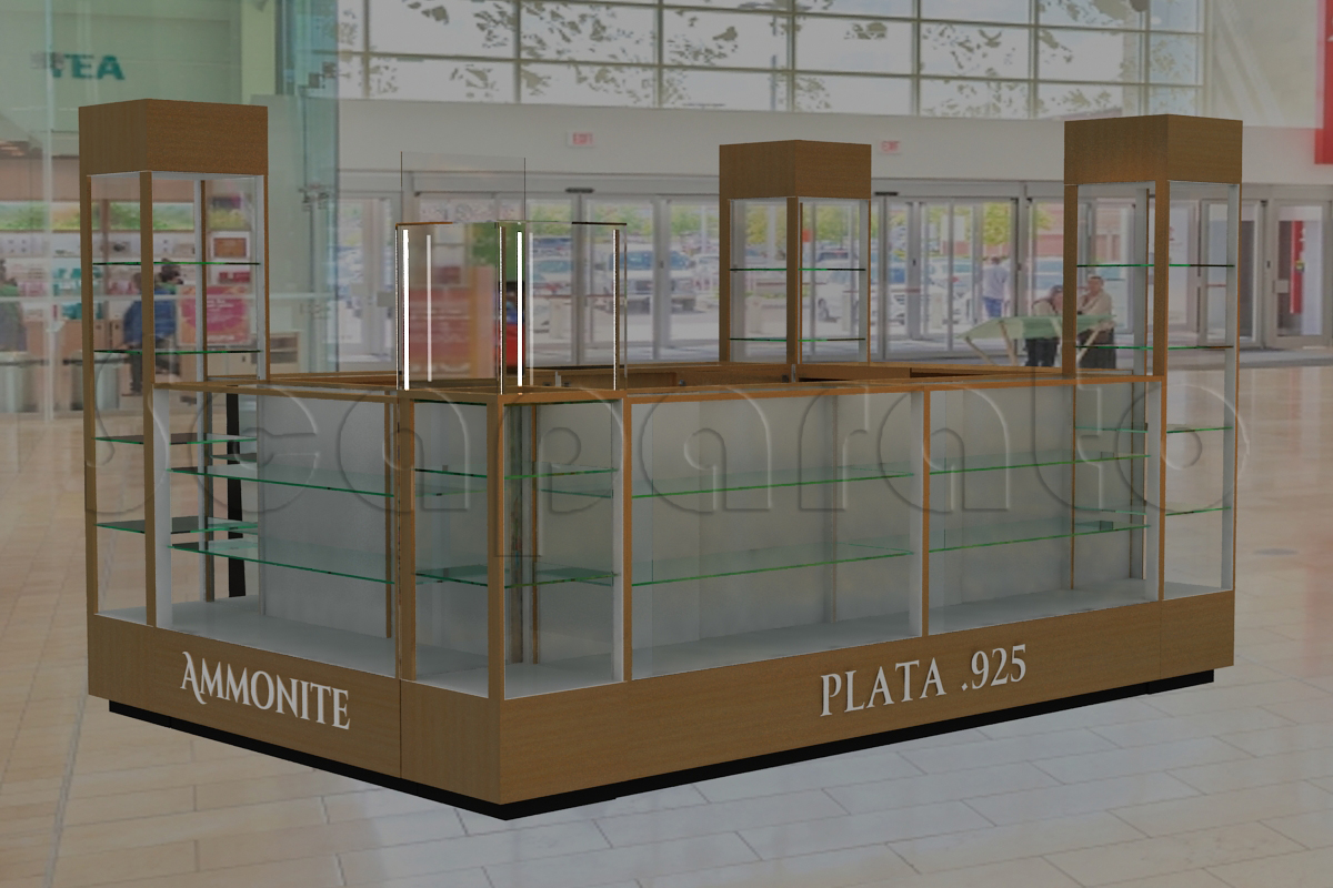 Kiosco de plateria diseñado para exhibir tus joyas con estilo, seguridad y funcionalidad, mejorando la experiencia de compra de tus clientes.