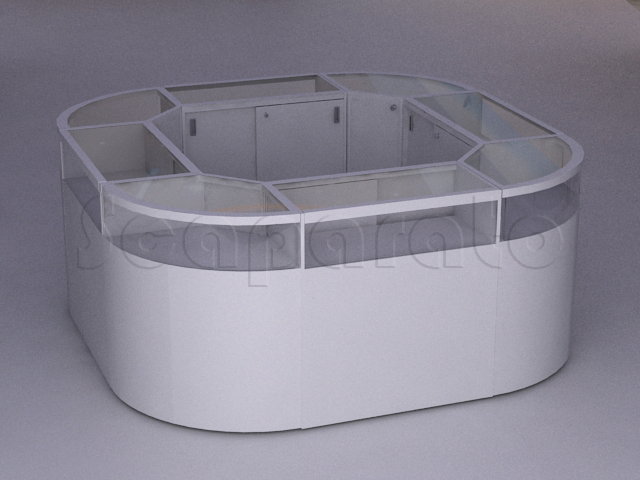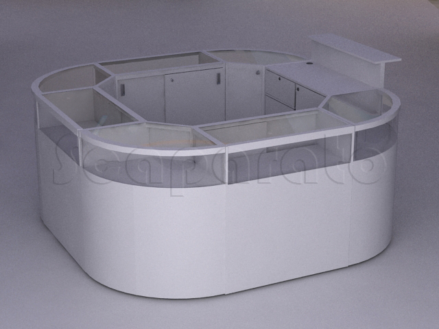 Kiosco de vitrinas curvas: mejora la exhibición de tus productos con diseño moderno, funcionalidad y adaptación perfecta a cualquier espacio comercial.