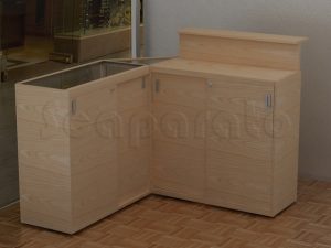 Mostrador con vitrina para cobro diseñado de la forma mas elegante para su negocio.