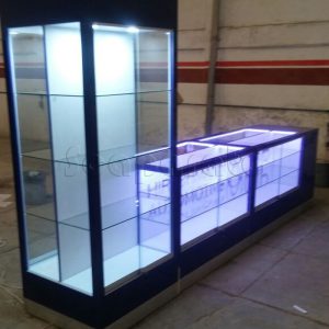Todas nuestras vitrinas de la torre tienen la iluminación incluida para una fácil configuración para exhibir su mercancía.